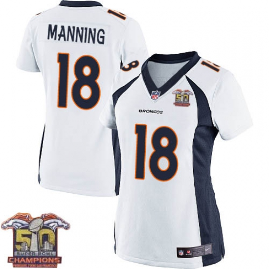 Women's Nike Denver Broncos #18 Peyton Manning Elite White Super Bowl 50 Champions NFL Jersey