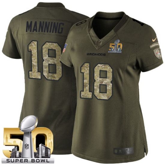 Women's Nike Denver Broncos #18 Peyton Manning Limited Green Salute to Service Super Bowl 50 Bound NFL Jersey