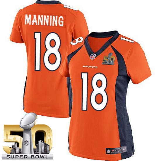 Home>NFL>Denver Broncos>Peyton Manning>Women's Nike Denver Broncos #18 Peyton Manning Limited Orange Team Color Super Bowl 50 Bound NFL Jersey