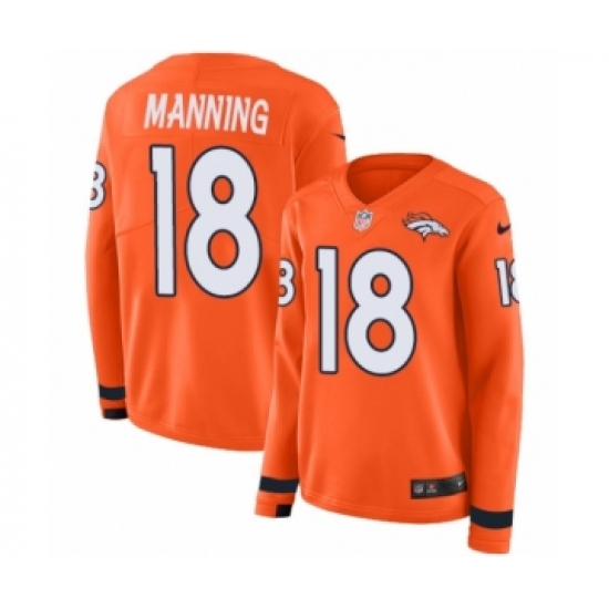 Women's Nike Denver Broncos #18 Peyton Manning Limited Orange Therma Long Sleeve NFL Jersey
