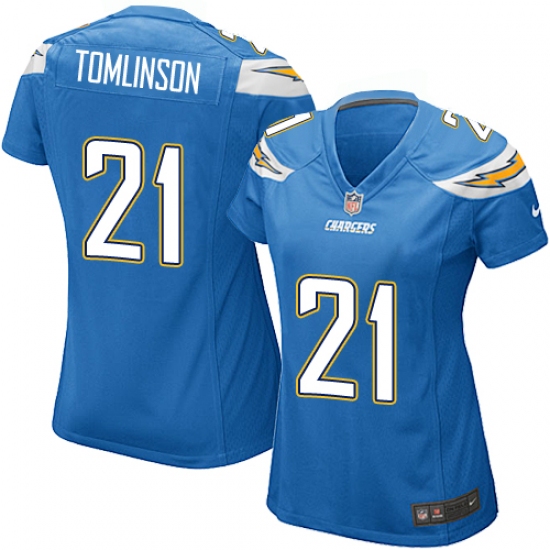 Home>NFL>Los Angeles Chargers>LaDainian Tomlinson>Women's Nike Los Angeles Chargers #21 LaDainian Tomlinson Game Electric Blue Alternate NFL Jersey