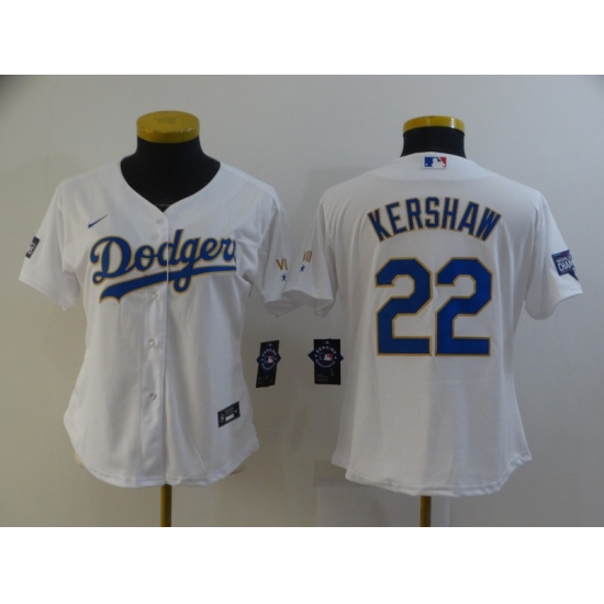 Women's Los Angeles Dodgers #22 Clayton Kershaw White 2025 Gold Collection Limited Stitched Baseball Jersey(Run Small)