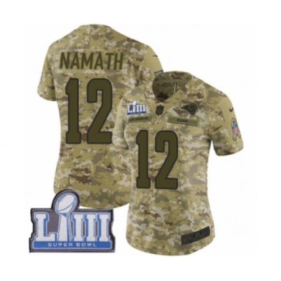 Women's Nike Los Angeles Rams #12 Joe Namath Limited Camo 2018 Salute to Service Super Bowl LIII Bound NFL Jersey