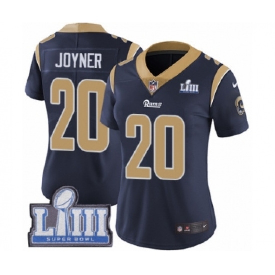 Women's Nike Los Angeles Rams #20 Lamarcus Joyner Navy Blue Team Color Vapor Untouchable Limited Player Super Bowl LIII Bound NFL Jersey