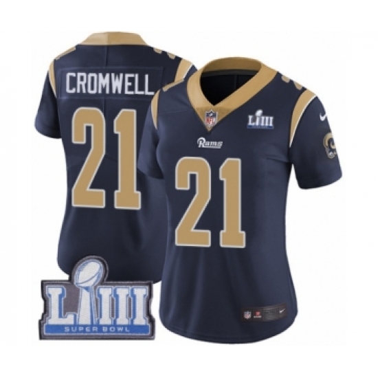 >Women's Nike Los Angeles Rams #21 Nolan Cromwell Navy Blue Team Color Vapor Untouchable Limited Player Super Bowl LIII Bound NFL Jersey