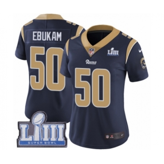 >Women's Nike Los Angeles Rams #50 Samson Ebukam Navy Blue Team Color Vapor Untouchable Limited Player Super Bowl LIII Bound NFL Jersey