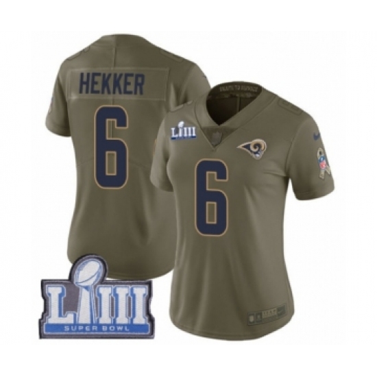 Women's Nike Los Angeles Rams #6 Johnny Hekker Limited Olive 2017 Salute to Service Super Bowl LIII Bound NFL Jersey