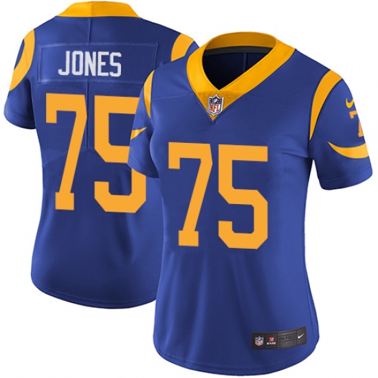 Women's Nike Los Angeles Rams #75 Deacon Jones Royal Blue Alternate Vapor Untouchable Limited Player NFL Jersey