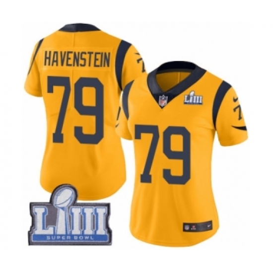 Women's Nike Los Angeles Rams #79 Rob Havenstein Limited Gold Rush Vapor Untouchable Super Bowl LIII Bound NFL Jersey