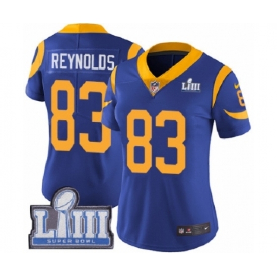 >Women's Nike Los Angeles Rams #83 Josh Reynolds Royal Blue Alternate Vapor Untouchable Limited Player Super Bowl LIII Bound NFL Jersey