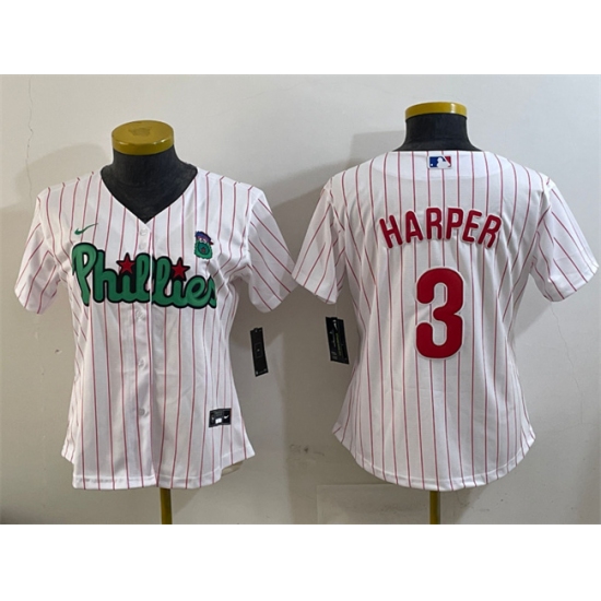 >Women's Philadelphia Phillies #3 Bryce Harper Phanatic White Stitched Baseball Jersey(Run Small)