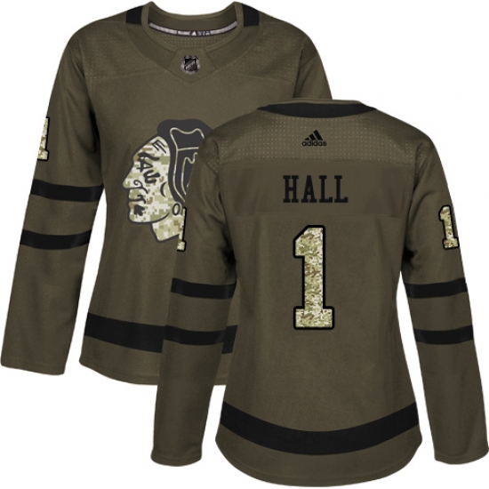 Home>NHL>Chicago Blackhawks>Glenn Hall>Women's Reebok Chicago Blackhawks #1 Glenn Hall Authentic Green Salute to Service NHL Jersey