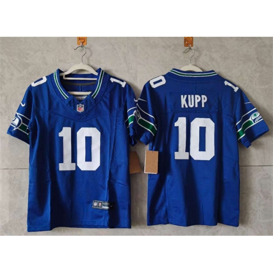 >Women's Seattle Seahawks #10 Cooper Kupp Royal 2024 F.U.S.E Throwback Vapor Limited Stitched Football Jersey(Run Small)