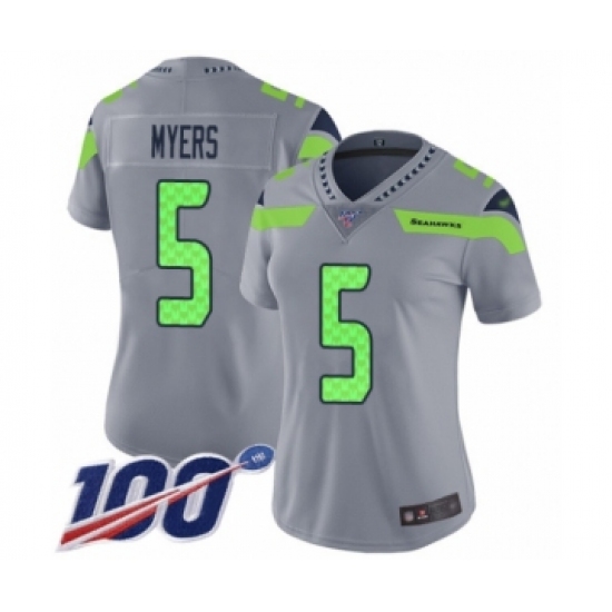 >Women's Seattle Seahawks #5 Jason Myers Limited Silver Inverted Legend 100th Season Football Jersey
