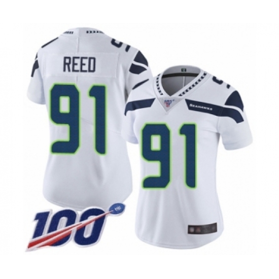 Women's Seattle Seahawks #91 Jarran Reed White Vapor Untouchable Limited Player 100th Season Football Jersey