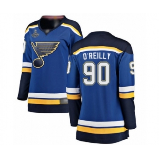 >Women's St. Louis Blues #90 Ryan O'Reilly Fanatics Branded Royal Blue Home Breakaway 2019 Stanley Cup Champions Hockey Jersey