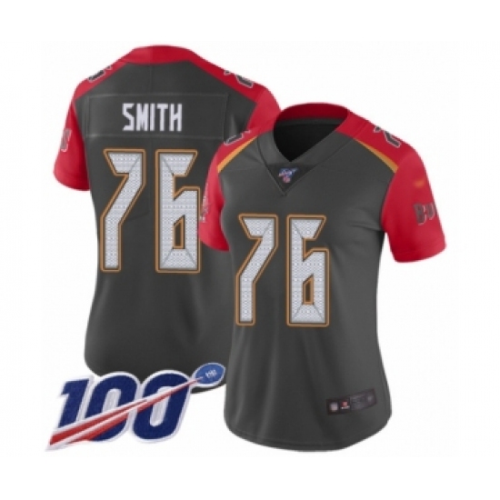 >Women's Tampa Bay Buccaneers #76 Donovan Smith Limited Gray Inverted Legend 100th Season Football Jersey