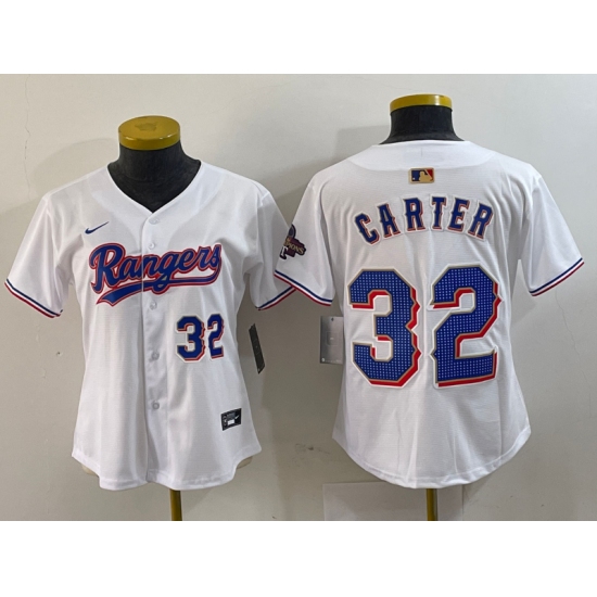Women's Texas Rangers #32 Evan Carter Number White 2024 Gold Collection Limited Cool Base Jerseys