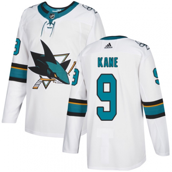 >Youth Adidas San Jose Sharks #9 Evander Kane Authentic White Away NHL Jersey