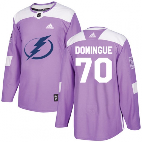 >Youth Adidas Tampa Bay Lightning #70 Louis Domingue Authentic Purple Fights Cancer Practice NHL Jersey