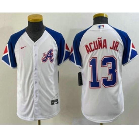 Youth Atlanta Braves #13 Ronald Acuna Jr White 2023 City Connect Cool Base Stitched Jersey