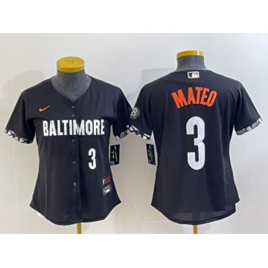 Women's Baltimore Orioles #3 Jorge Mateo Black 2023 City Connect Cool Base Stitched Jersey