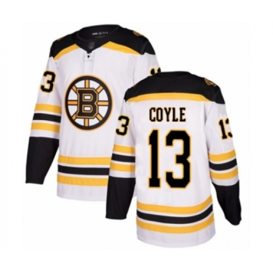 >Youth Boston Bruins #13 Charlie Coyle Authentic White Away Hockey Jersey