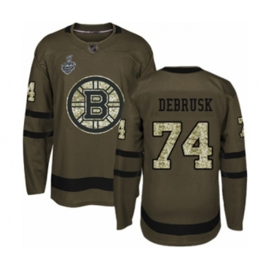 Youth Boston Bruins #74 Jake DeBrusk Authentic Green Salute to Service 2019 Stanley Cup Final Bound Hockey Jersey
