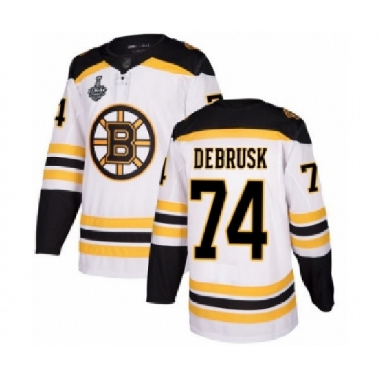 Men's Boston Bruins #74 Jake DeBrusk Authentic White Away Fanatics Branded Breakaway 2019 Stanley Cup Final Bound Hockey Jersey