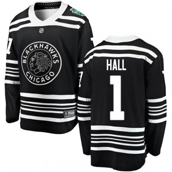 Men's Chicago Blackhawks #1 Glenn Hall Black 2019 Winter Classic Fanatics Branded Breakaway NHL Jersey