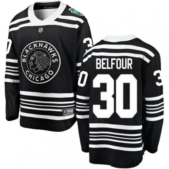 >Youth Chicago Blackhawks #30 ED Belfour Black 2019 Winter Classic Fanatics Branded Breakaway NHL Jersey
