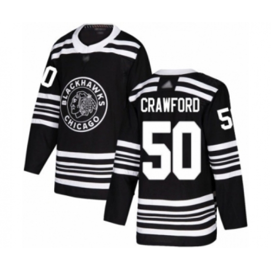 >Youth Chicago Blackhawks #50 Corey Crawford Authentic Black Alternate Hockey Jersey