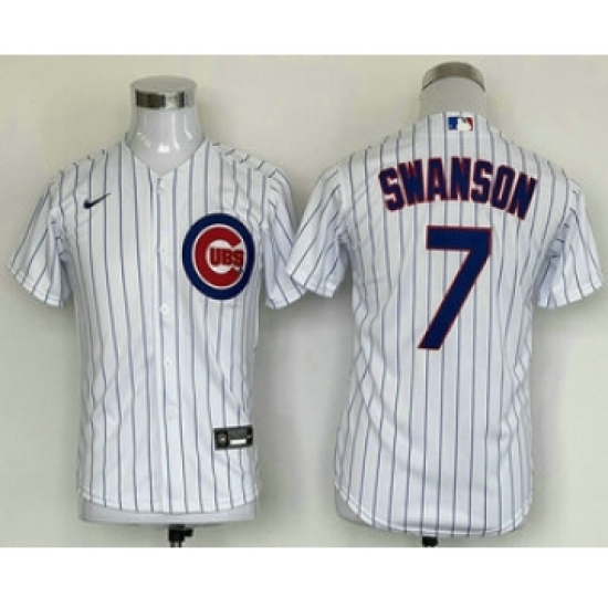 >Youth Chicago Cubs #7 Dansby Swanson White Stitched MLB Cool Base Nike Jersey