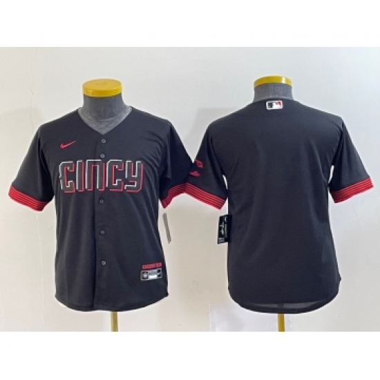 Youth Cincinnati Reds #11 Barry Larkin Number Black 2023 City Connect Cool Base Stitched Jersey2