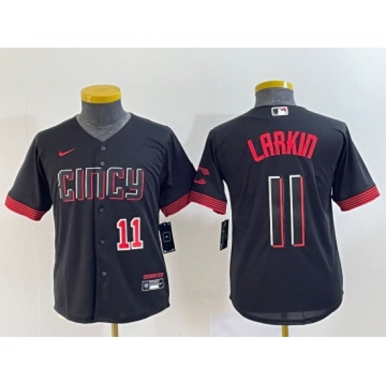 >Youth Cincinnati Reds #11 Barry Larkin Number Black 2023 City Connect Cool Base Stitched Jersey1