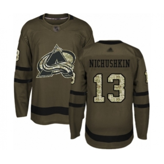 >Youth Colorado Avalanche #13 Valeri Nichushkin Authentic Green Salute to Service Hockey Jersey