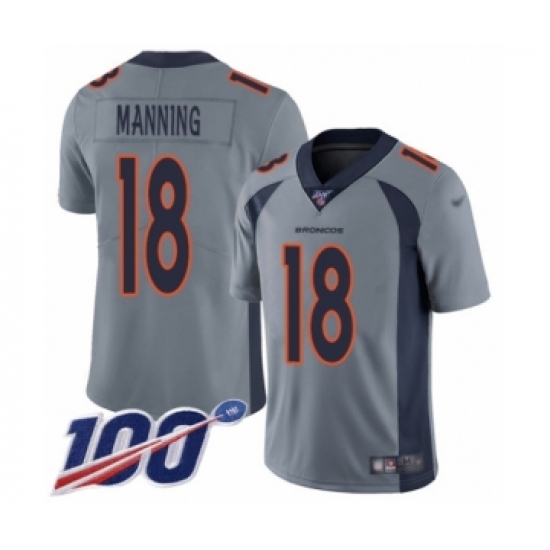 Youth Denver Broncos #18 Peyton Manning Limited Silver Inverted Legend 100th Season Football Jersey