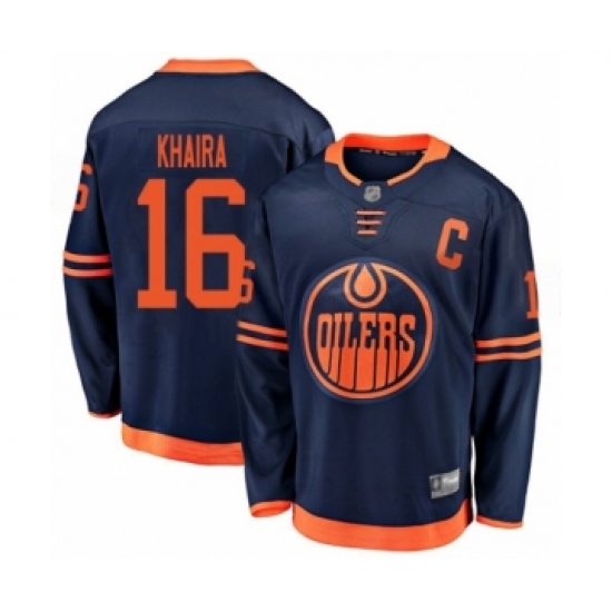 Youth Edmonton Oilers #16 Jujhar Khaira Authentic Navy Blue Alternate Fanatics Branded Breakaway Hockey Jersey