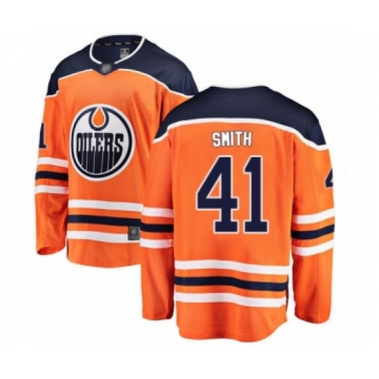 >Youth Edmonton Oilers #41 Mike Smith Authentic Orange Home Fanatics Branded Breakaway Hockey Jersey
