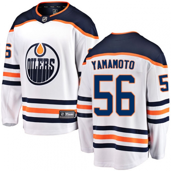 Home>NHL>Edmonton Oilers>Kailer Yamamoto>Youth Edmonton Oilers #56 Kailer Yamamoto Fanatics Branded White Away Breakaway NHL Jersey