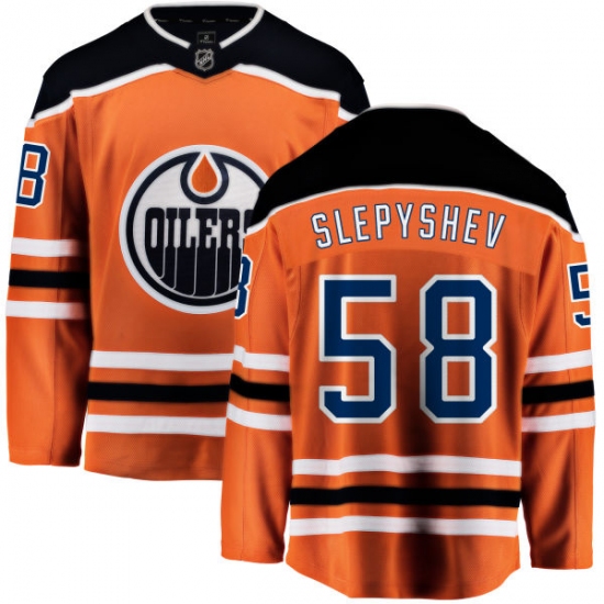 Home>NHL>Edmonton Oilers>Anton Slepyshev>Youth Edmonton Oilers #58 Anton Slepyshev Fanatics Branded Orange Home Breakaway NHL Jersey