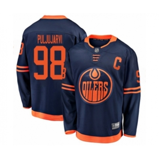 >Youth Edmonton Oilers #98 Jesse Puljujarvi Authentic Navy Blue Alternate Fanatics Branded Breakaway Hockey Jersey