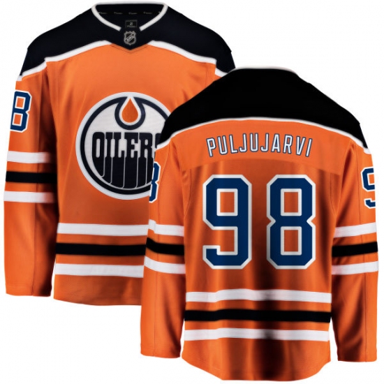 Home>NHL>Edmonton Oilers>Jesse Puljujarvi>Youth Edmonton Oilers #98 Jesse Puljujarvi Fanatics Branded Orange Home Breakaway NHL Jersey