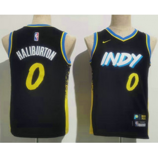 >Youth Indiana Pacers #0 Tyrese Haliburton Navy Blue 2023 City Icon Swingman Jersey