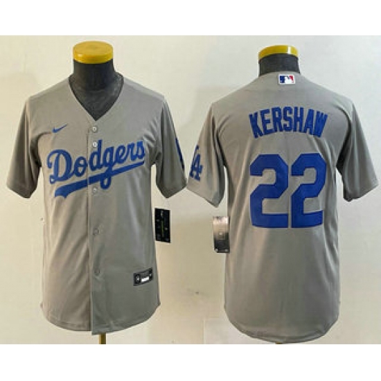 >Youth Los Angeles Dodgers #22 Clayton Kershaw Grey Stitched Cool Base Nike Jersey