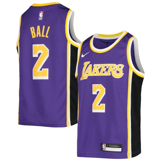 Youth Los Angeles Lakers #2 Lonzo Ball Nike Purple 2020-21 Swingman Jersey