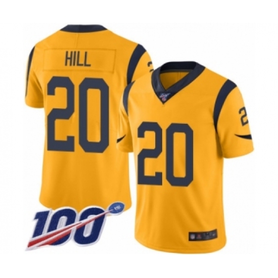 >Youth Los Angeles Rams #20 Troy Hill Limited Gold Rush Vapor Untouchable 100th Season Football Jersey