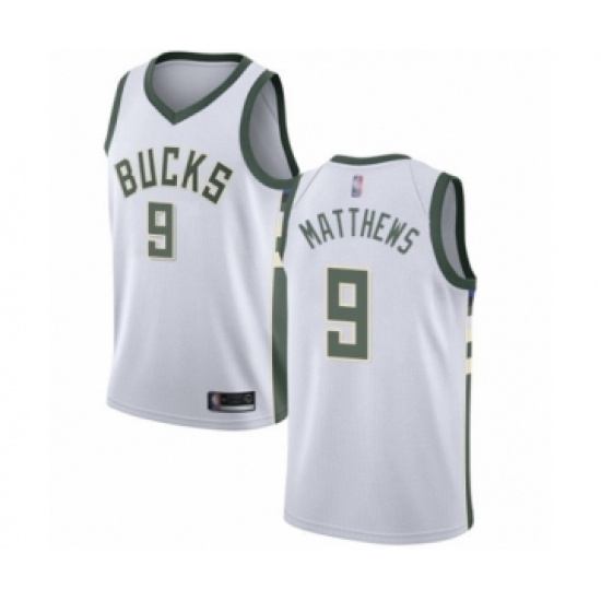>Youth Milwaukee Bucks #9 Wesley Matthews Swingman White Basketball Jersey - Association Edition