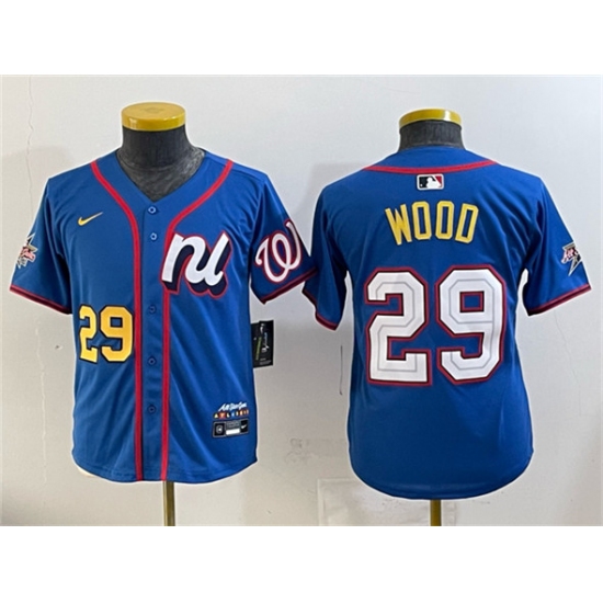 >Youth National League #29 James Wood Blue 2025 All-Star Edition Limited Stitched Baseball Jersey