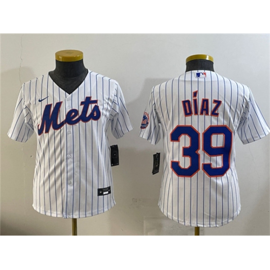 >Youth New York Mets #39 Edwin Díaz White Cool Base Stitched Baseball Jersey